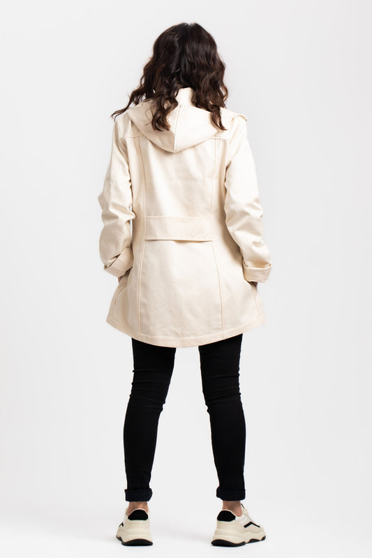 We use a densely woven organic cotton textile which is certified and comes with a contaminant-free impregnation. The fabric is wind- and water-resistant as well as breathable and vegan.