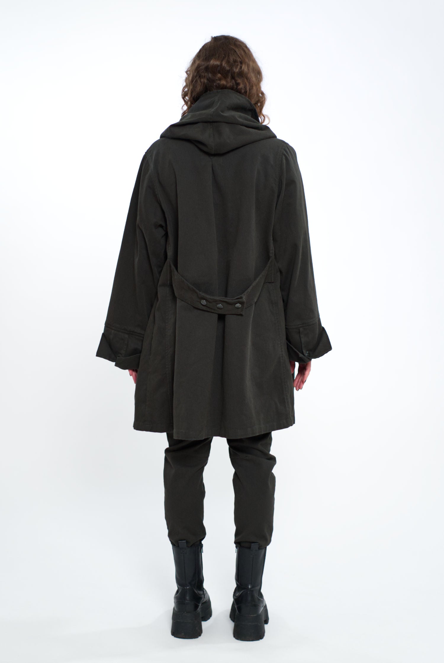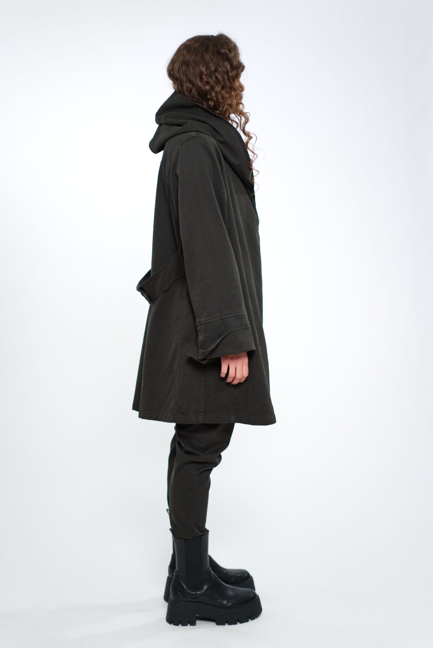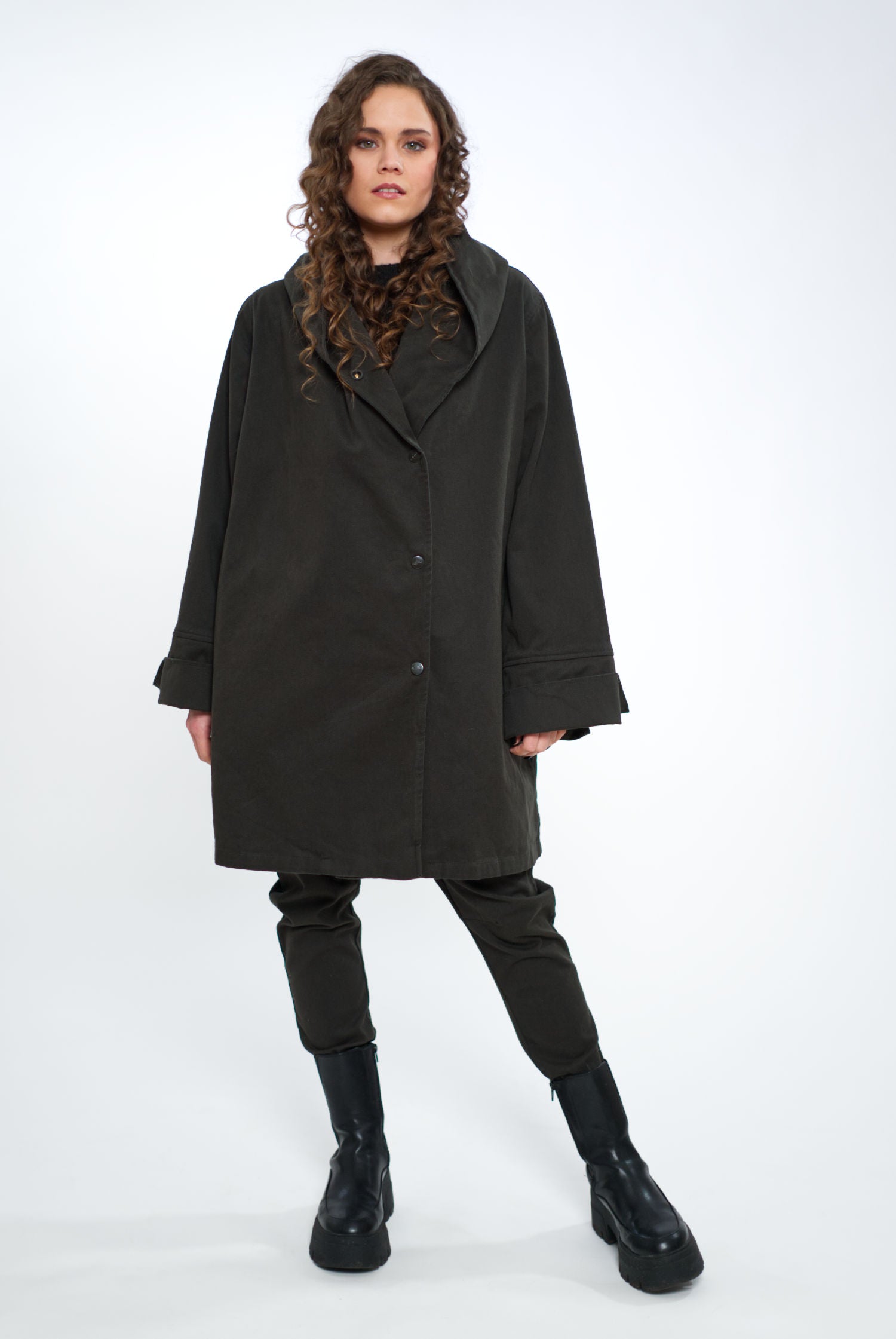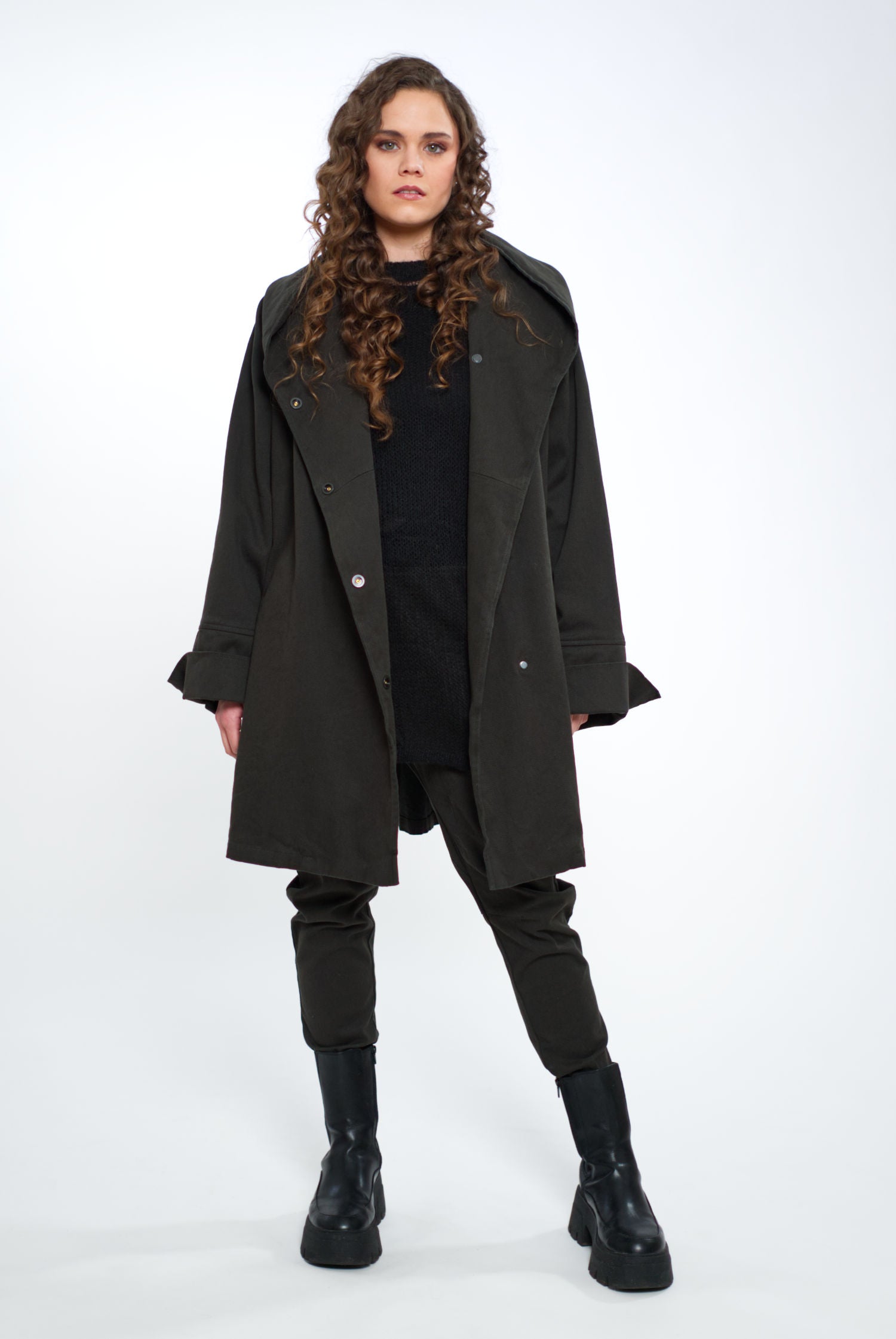 Perfekt für die Übergangszeit: ABELIE ist eine lange Designerjacke mit Schalkragenkapuze, die Ihnen je nach Bedarf großzügige Weite bietet oder figurbetont getragen werden kann. Das Design vereint modische Eleganz mit praktischer Lässigkeit.