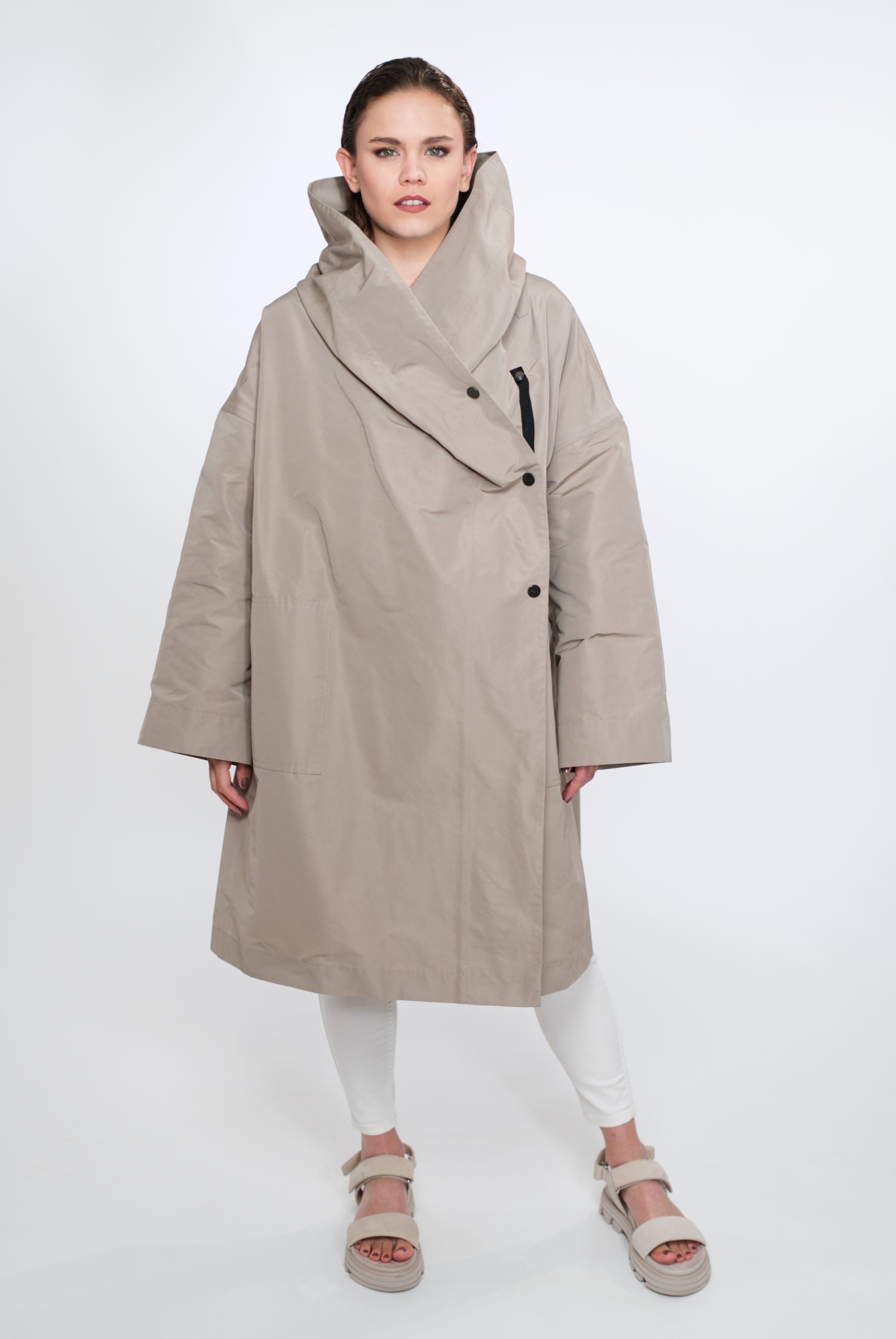 Perfekt für jede Jahreszeit: CAPE ist bewusst oversized geschnitten und kann das ganze Jahr über getragen werden – mit und ohne Winterpullover. Der Designermantel verbindet zeitloses Design mit modernem Stil.