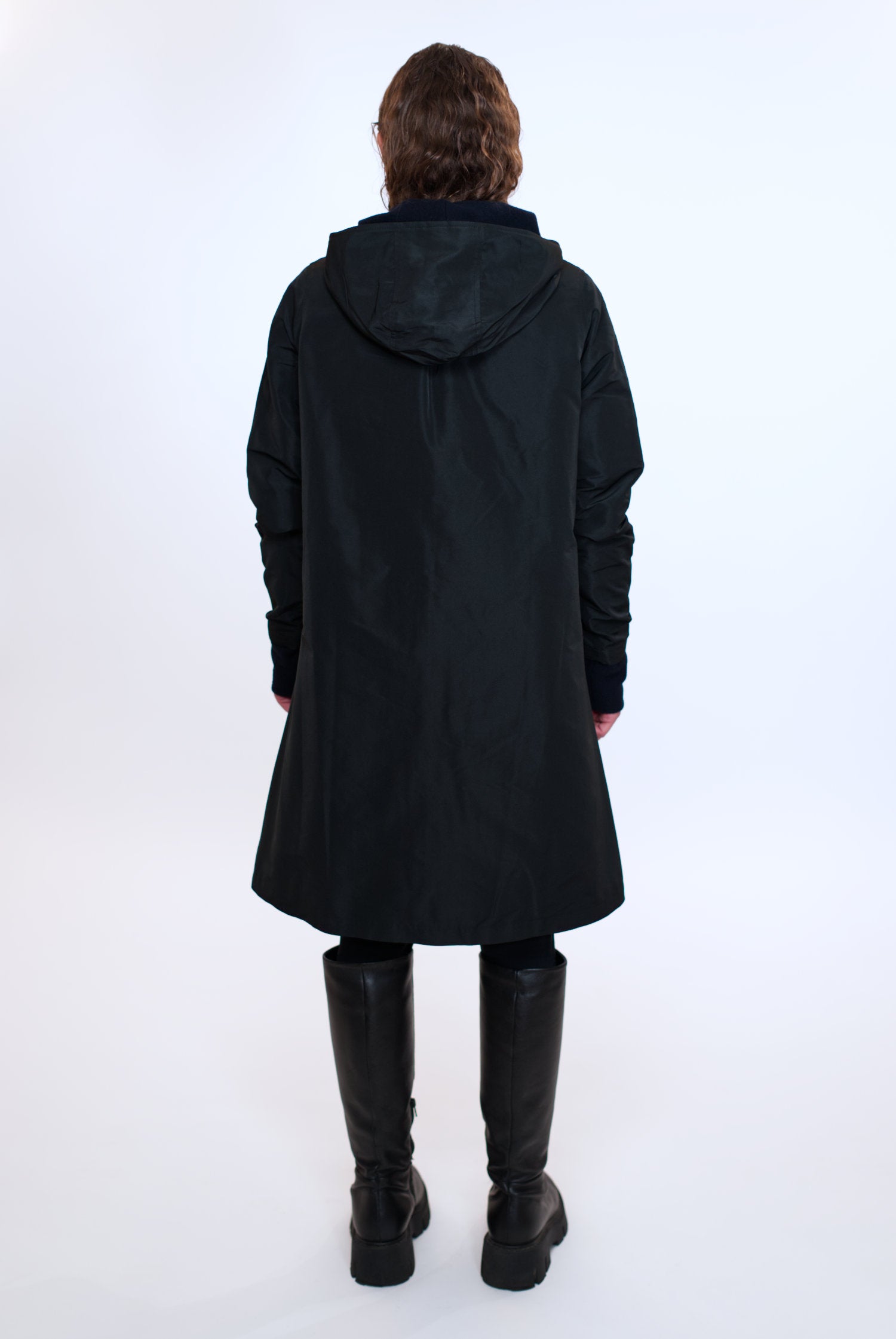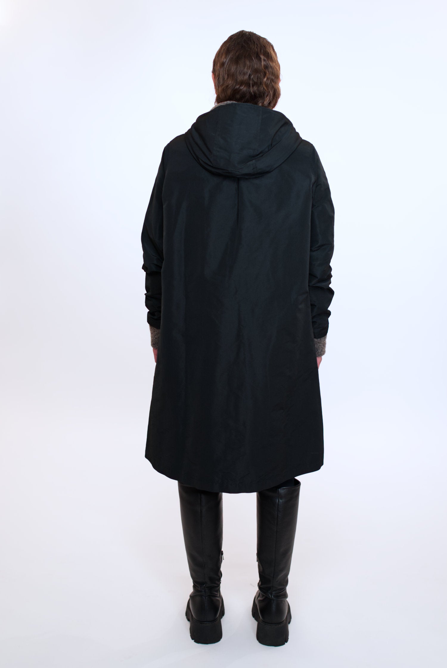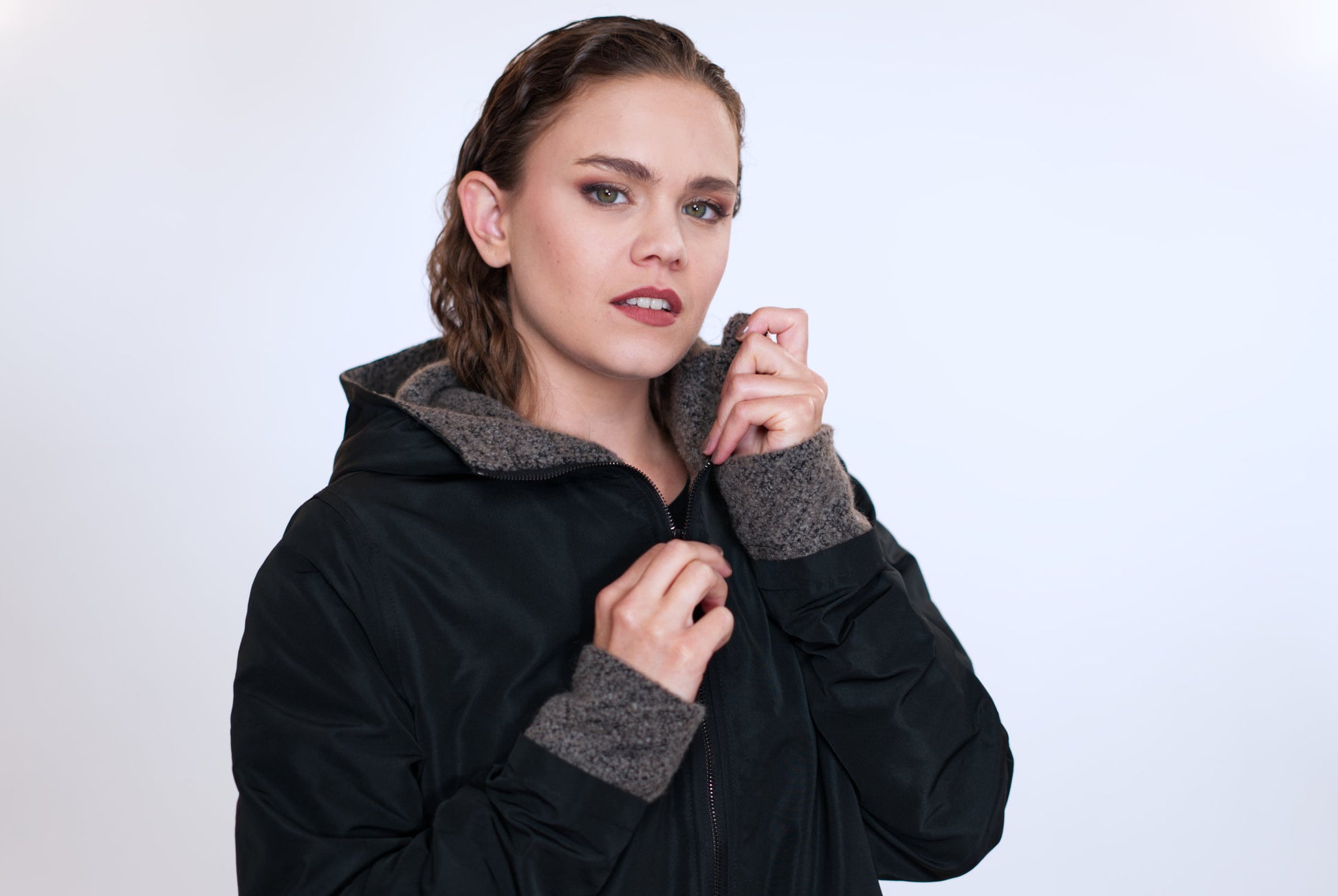 GOCCIA verbindet zeitgenössisches Design mit Nachhaltigkeit. Der Designerparka mit Kapuze und Details aus recycelter Wolle ist die perfekte Begleitund in der kälteren Jahreszeit.