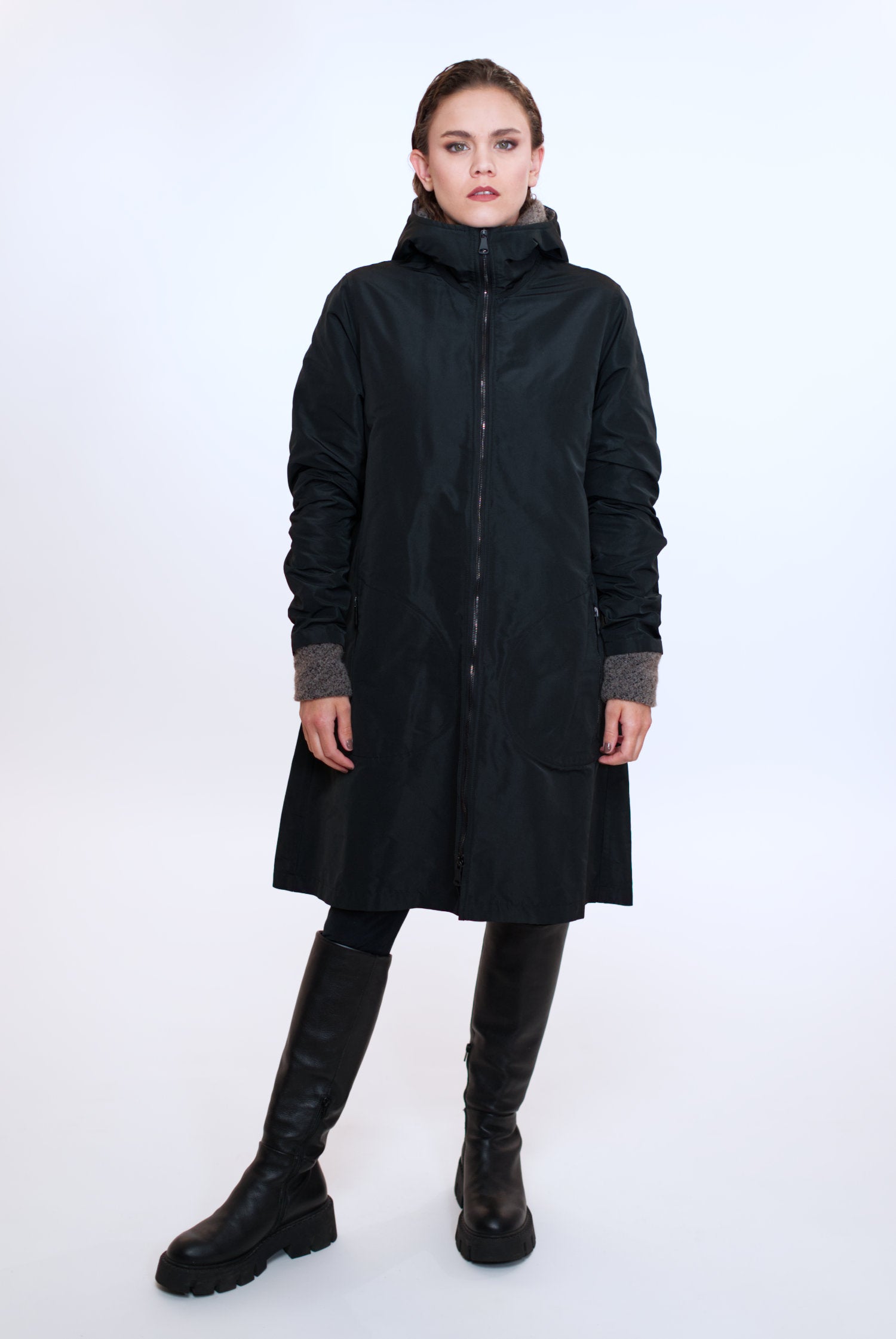 Unser Favorit im Herbst und Winter: GOCCIA ist ein zeitloser Parka mit schmaler Schulter in A-Linie, der zu jedem Outfit passt. Ein besonderes Highlight: das Futter aus recycelter Wolle.