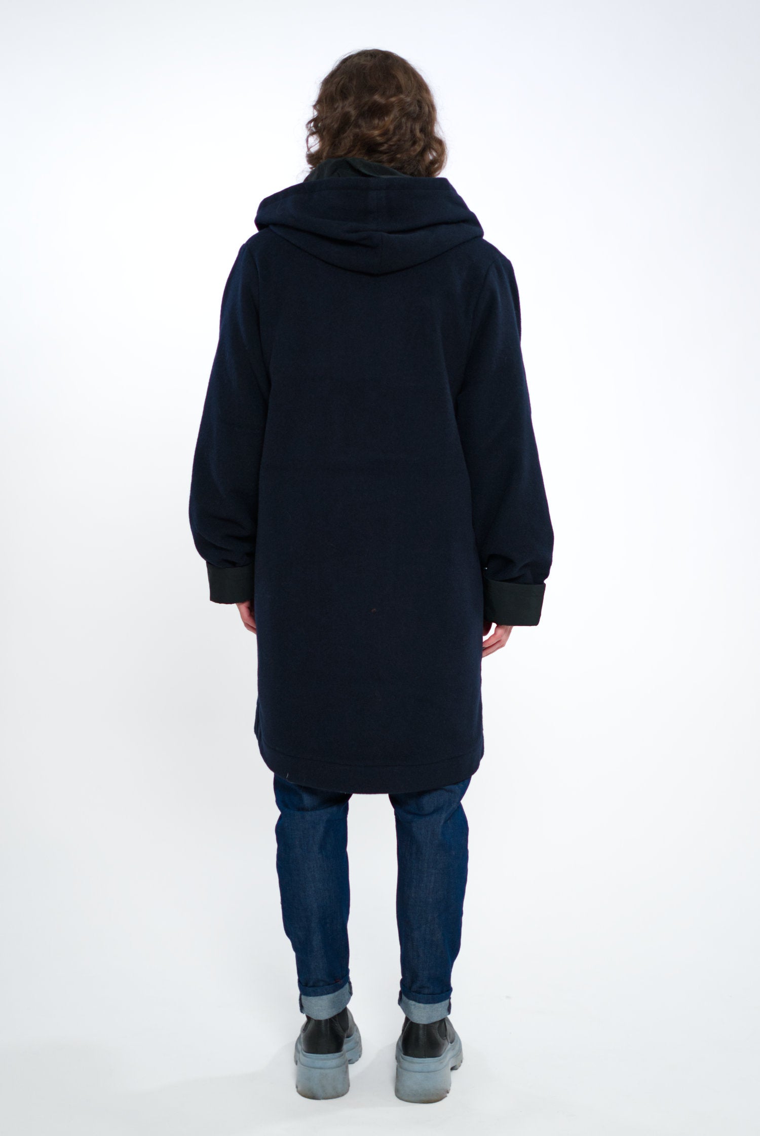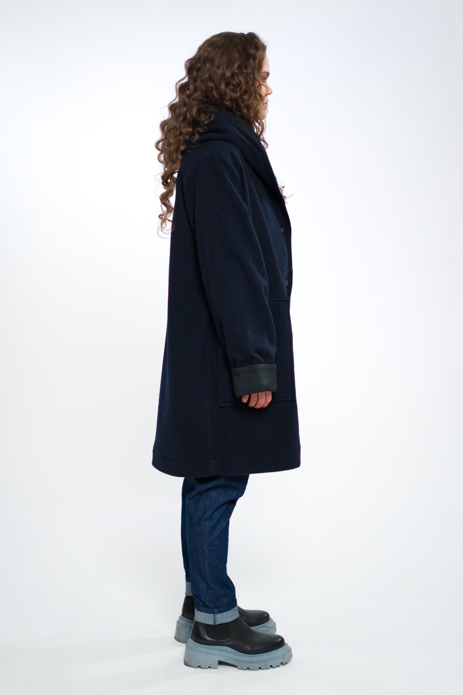 ROBINIA verkörpert modernen Stil mit innovativen Materialien. Der Mantel zeichnet sich durch seinen großzügigen A-Linien-Schnitt und eine elegante Schalkragenkapuze aus. Die kontrastierende Details aus recyceltem Polyester verleihen ROBINIA eine außergewöhnliche Eleganz. Jedes Detail, von den aufgesetzten Taschen bis zum nachhaltigen Futter, ist sorgfältig durchdacht und macht ROBINIA zu einem einzigartigen Designermantel.