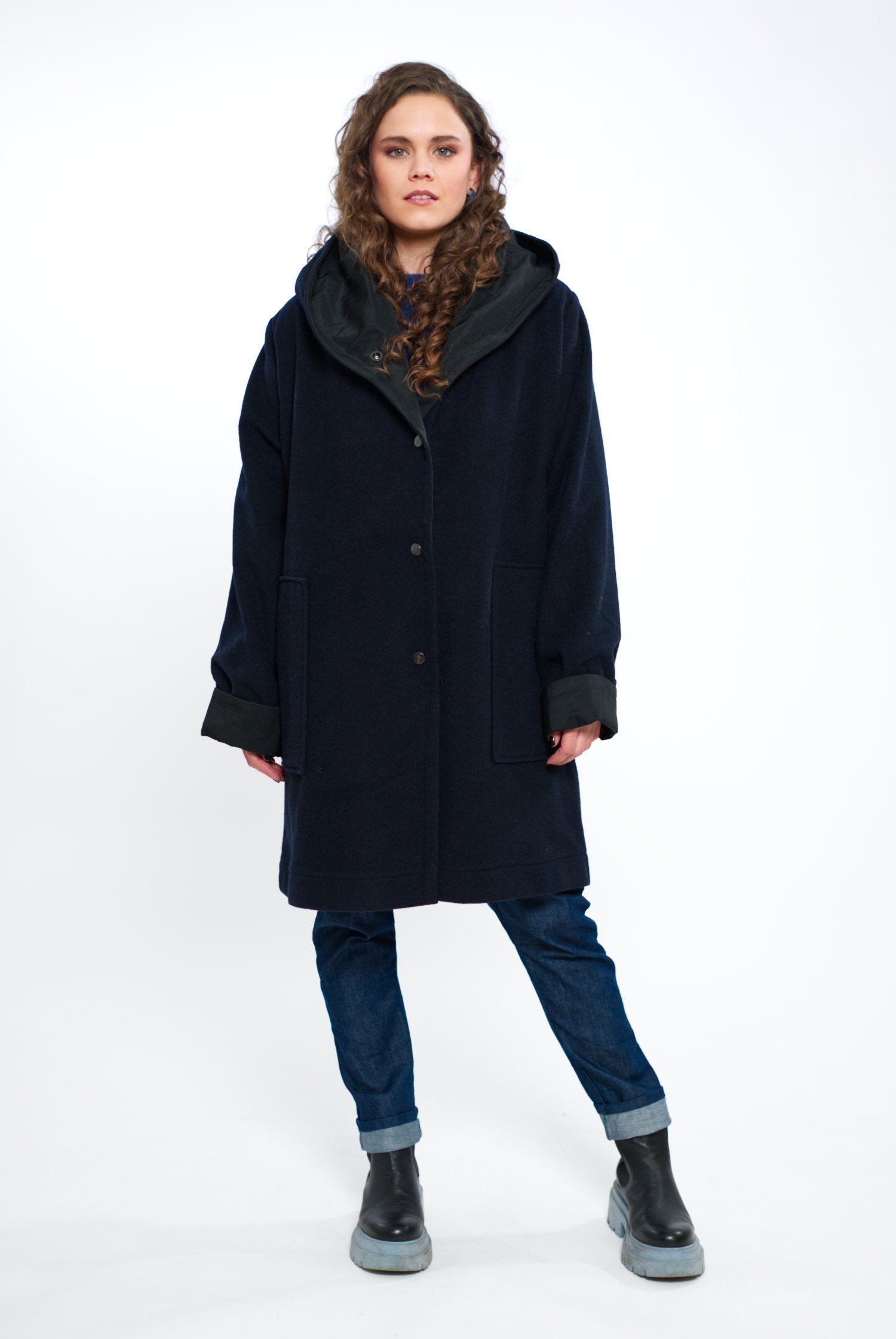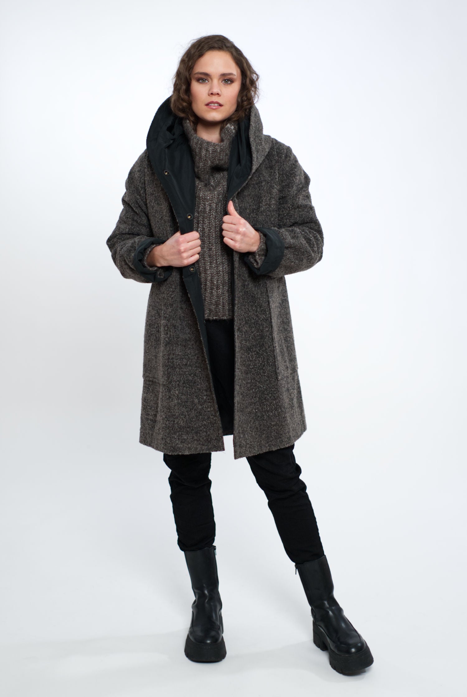 • ROBINIA ist ein Kurzmantel, der mit seinem großzügigen Schnitt und der stilvollen Schalkragenkapuze eine harmonische Balance zwischen modischem Anspruch und bequemer Passform bietet.
