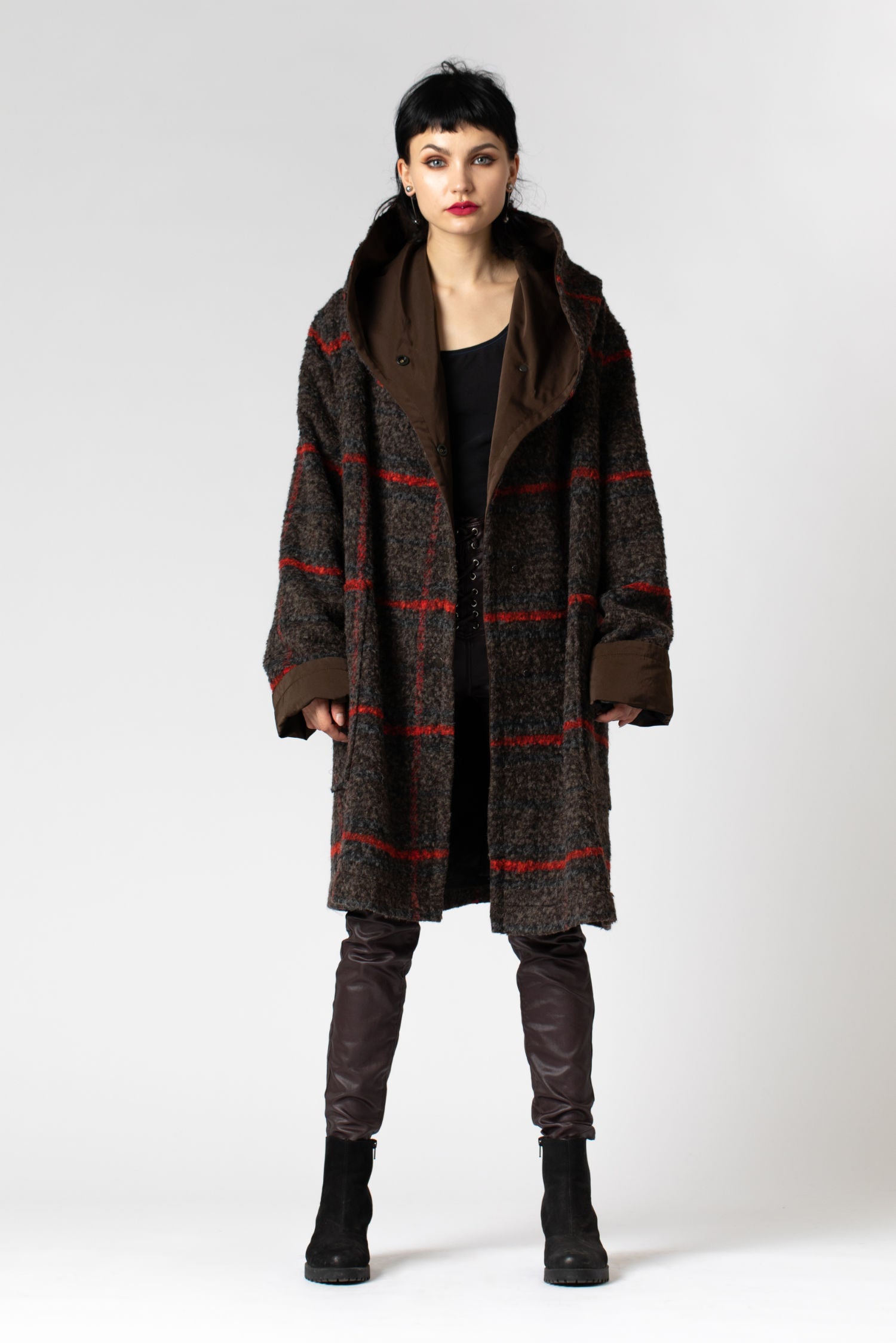 • Großzügig geschnittener Kurzmantel mit Schalkragenkapuze