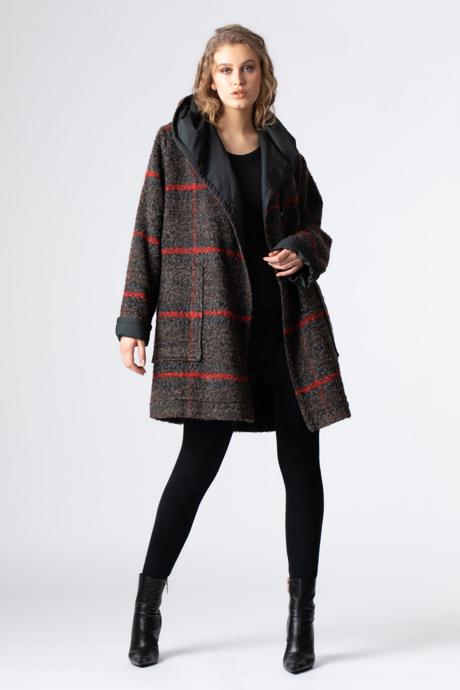 • Großzügig geschnittener Kurzmantel mit Schalkragenkapuze