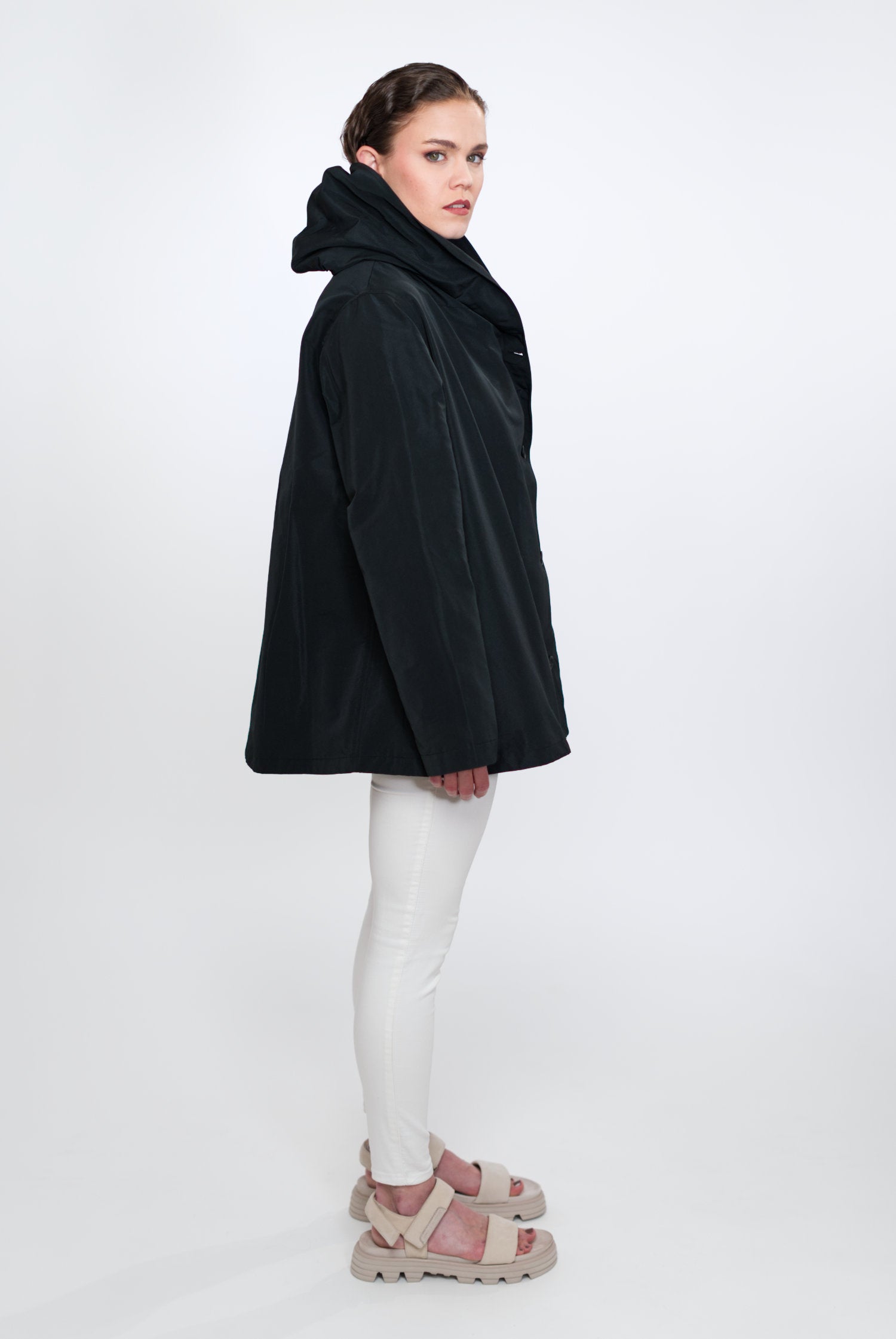 VIOLA ist nicht einfach nur eine Jacke, sie ist ein Statement für Modebewusstsein und Nachhaltigkeit. Sie ist charakterisiert durch ihre zeitlose A-Linie, den Schalkragen mit integrierter Kapuze, versteckte Taschen und umweltfreundliche Materialien. Make a conscious choice for fashion you love!