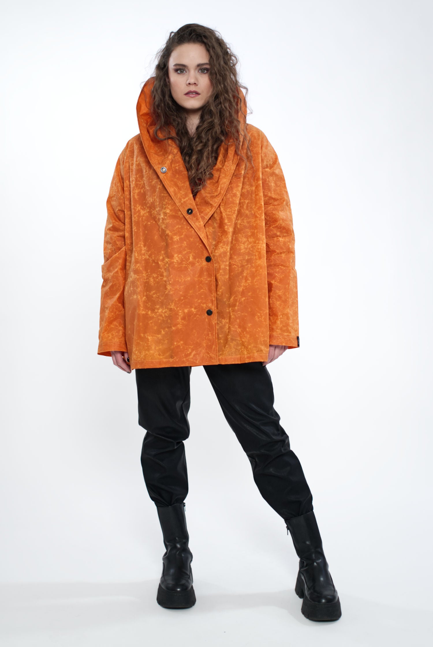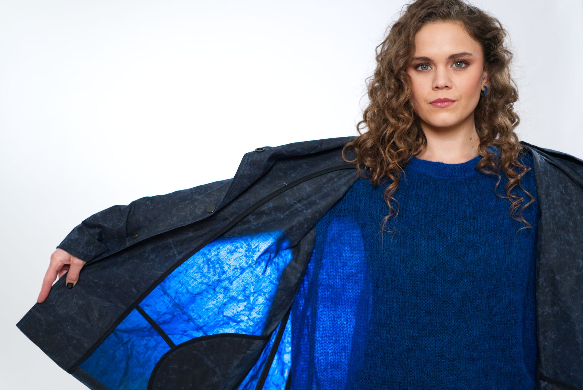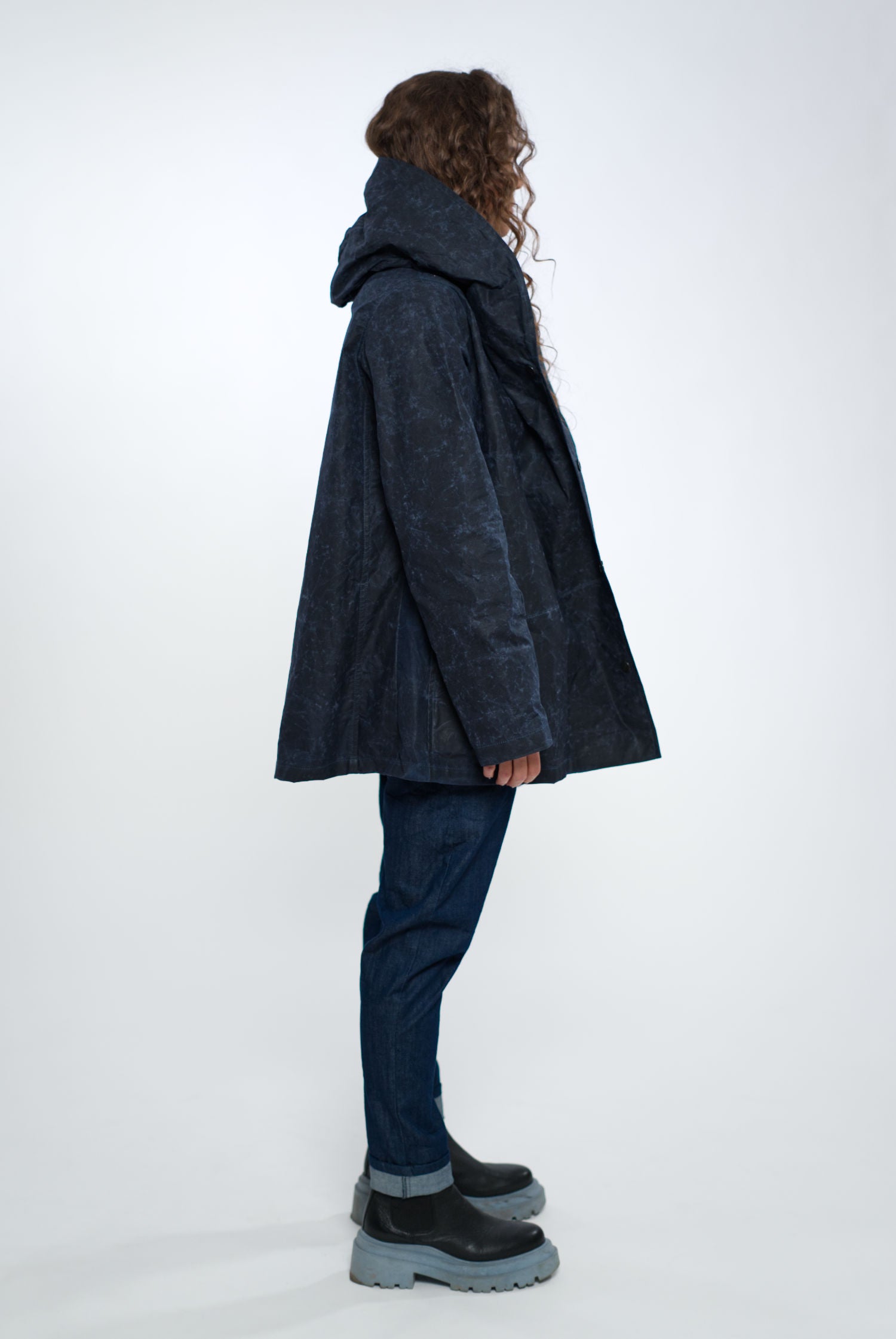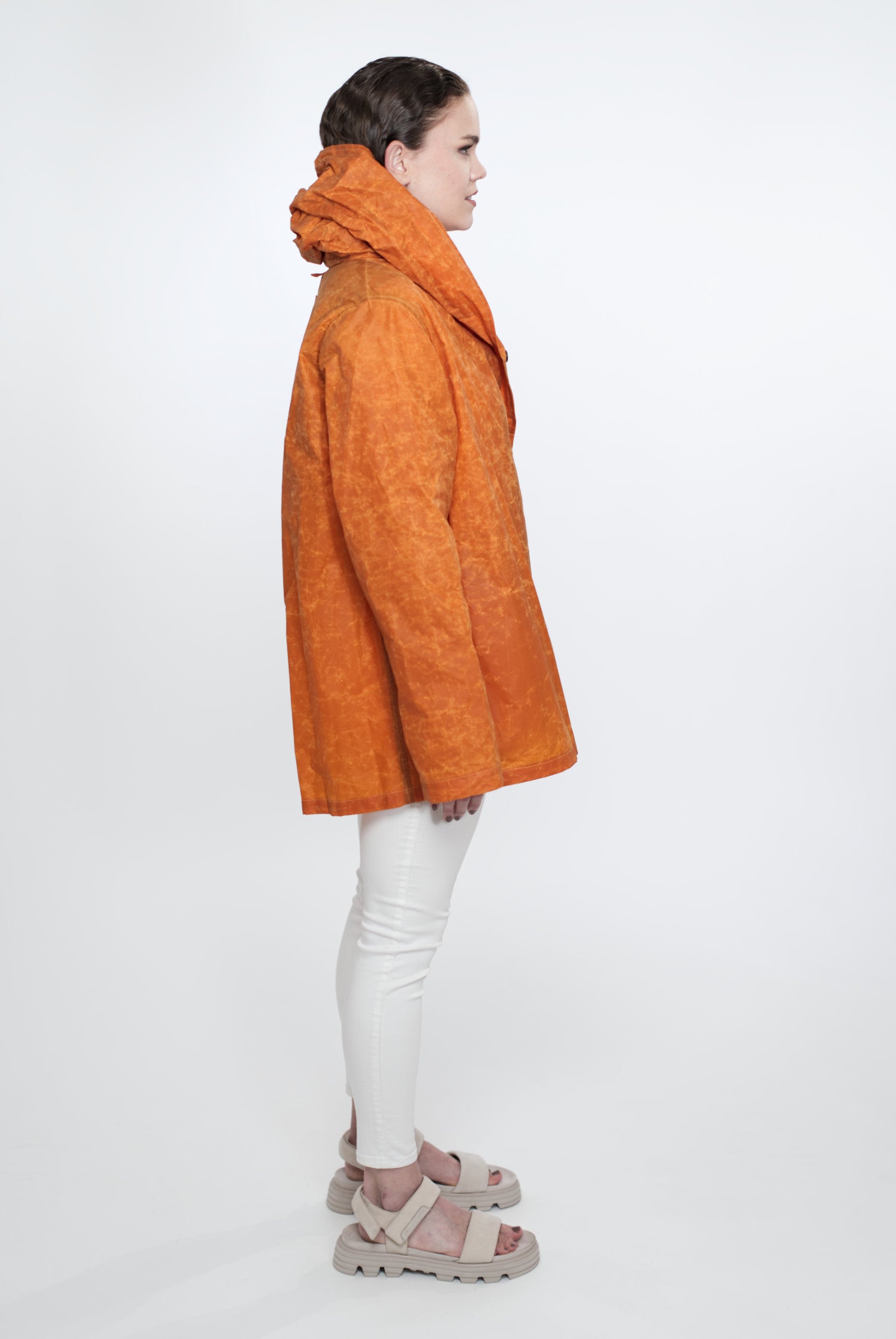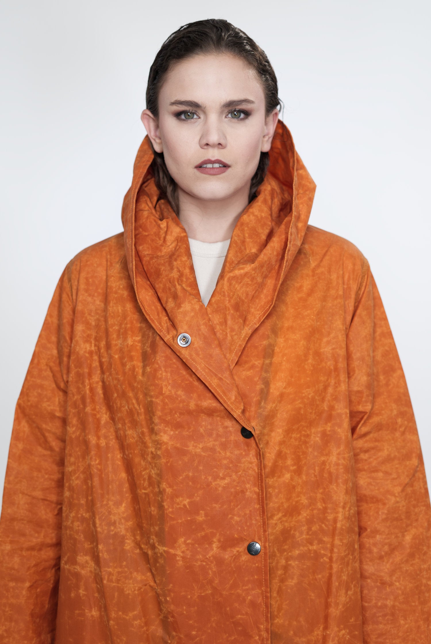 Ein echter Hingucker: VIOLA mit Bienenwachsbeschichtung ist eine facettenreiche und nachhaltige Designerjacke. Die Kurzjacke mit Schalkragenkapuze in A-Linie eignet sich perfekt als ständige Begleiterin für das ganze Jahr.