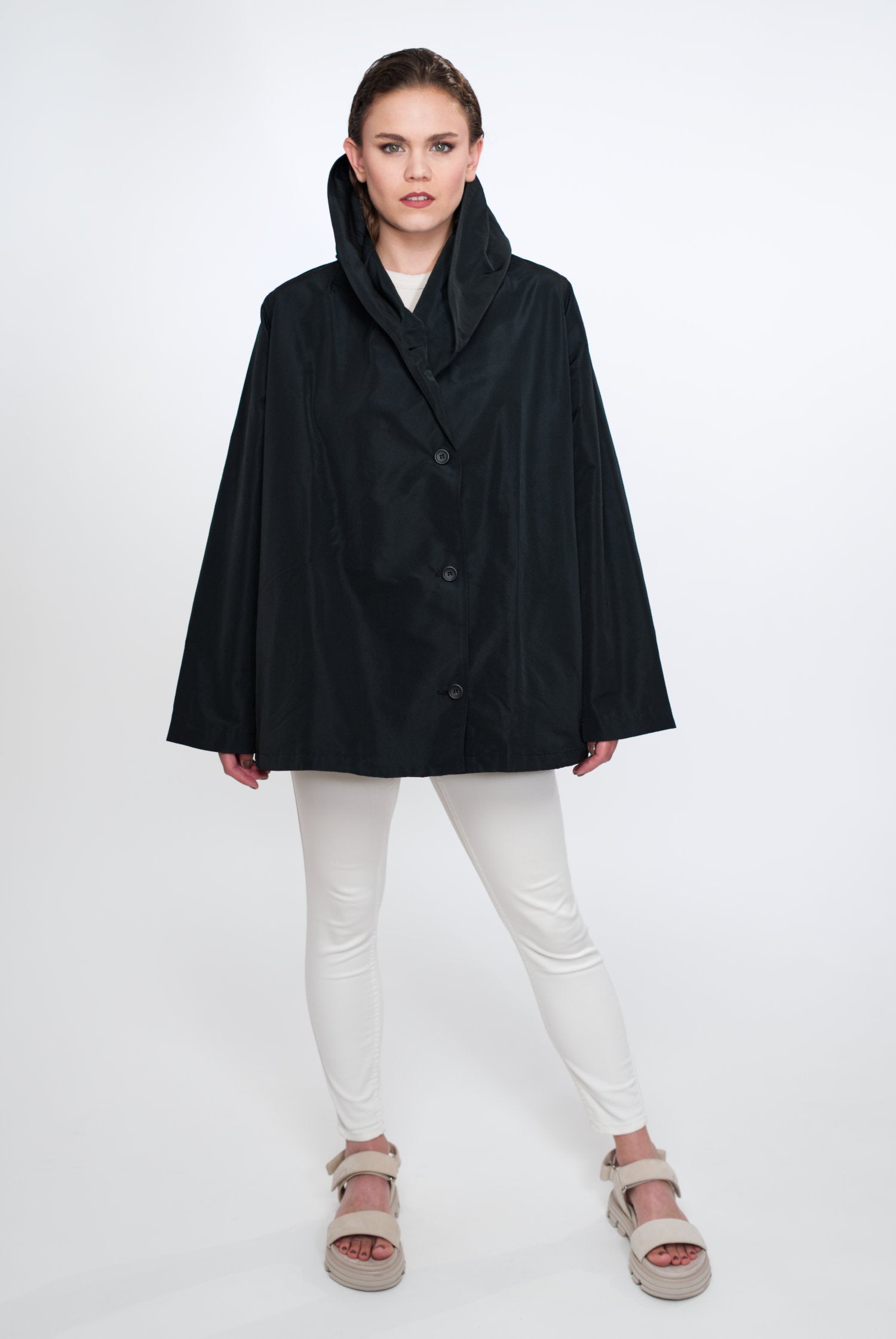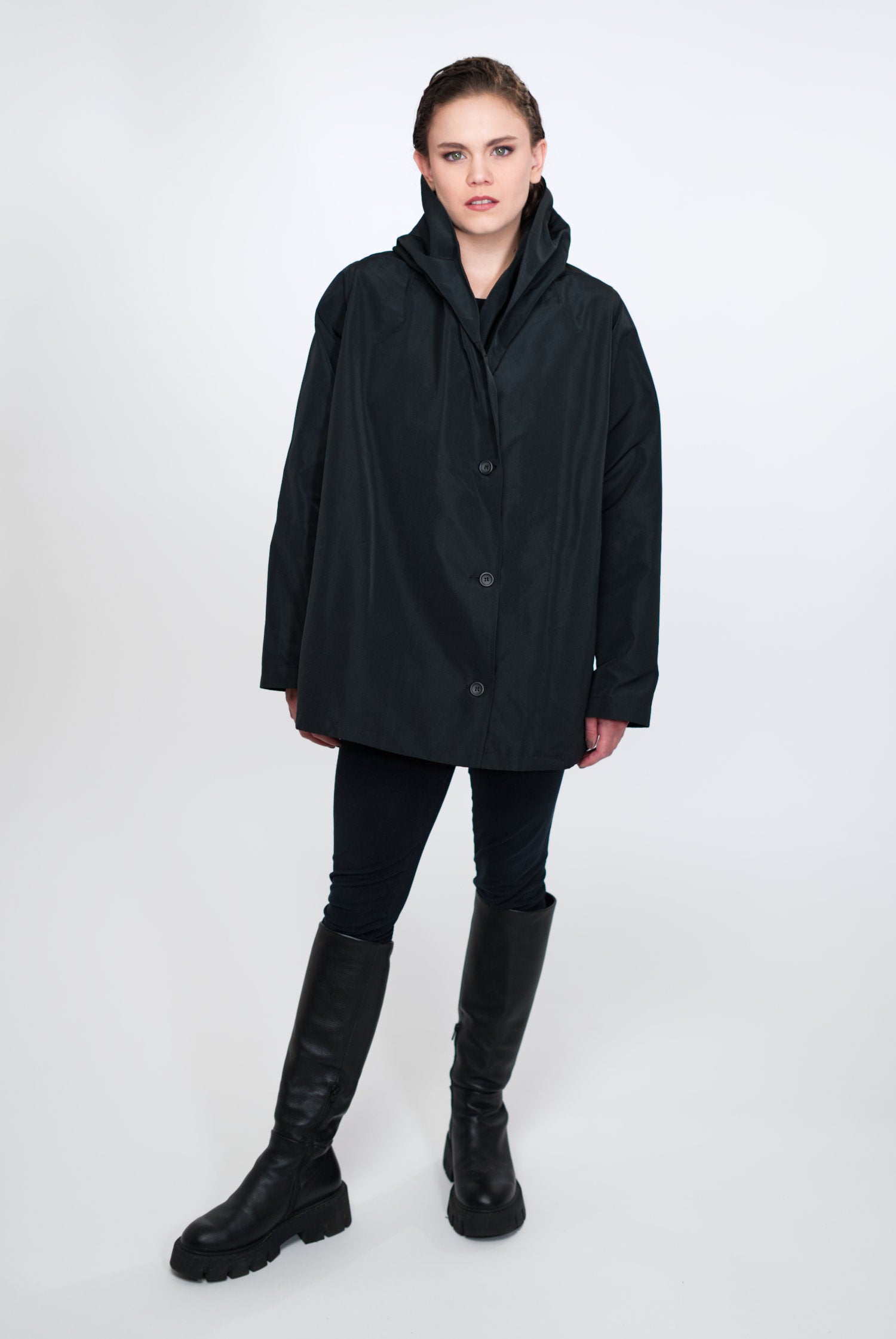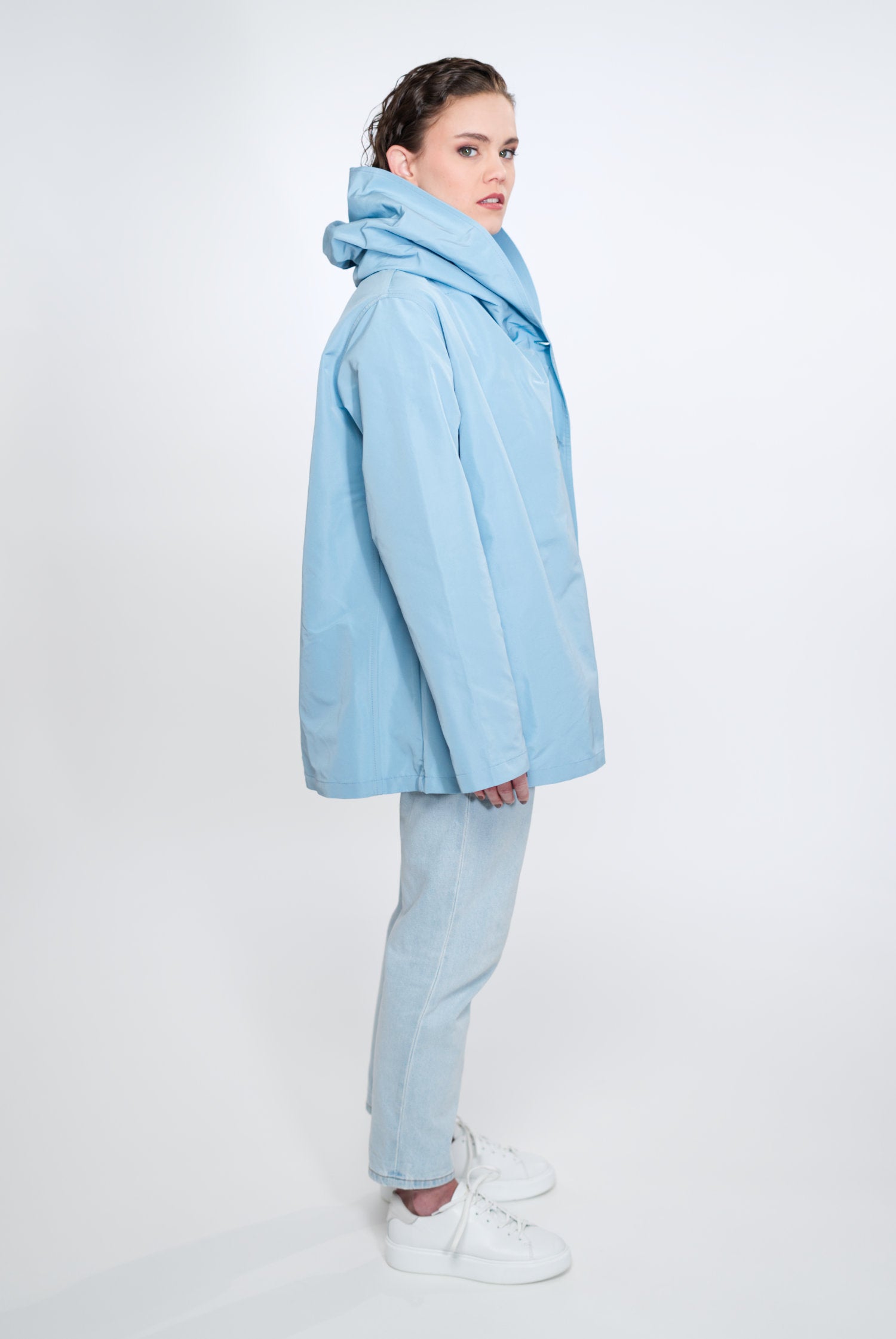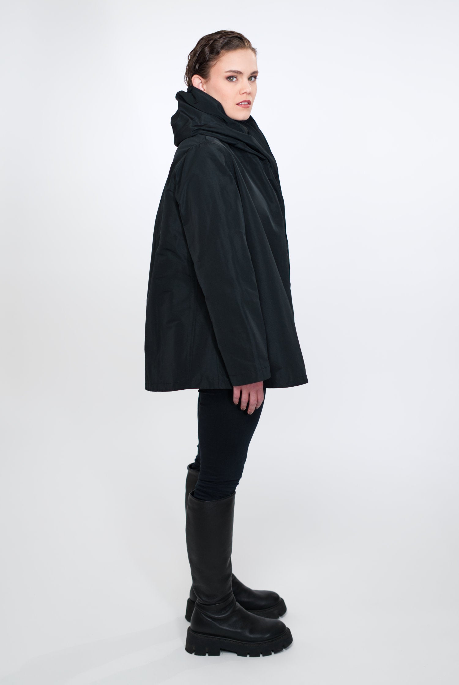 VIOLA ist nicht einfach nur eine Jacke, sie ist ein Statement für Modebewusstsein und Nachhaltigkeit. Sie ist charakterisiert durch ihre zeitlose A-Linie, den Schalkragen mit integrierter Kapuze, versteckte Taschen und umweltfreundliche Materialien. Make a conscious choice for fashion you love!
