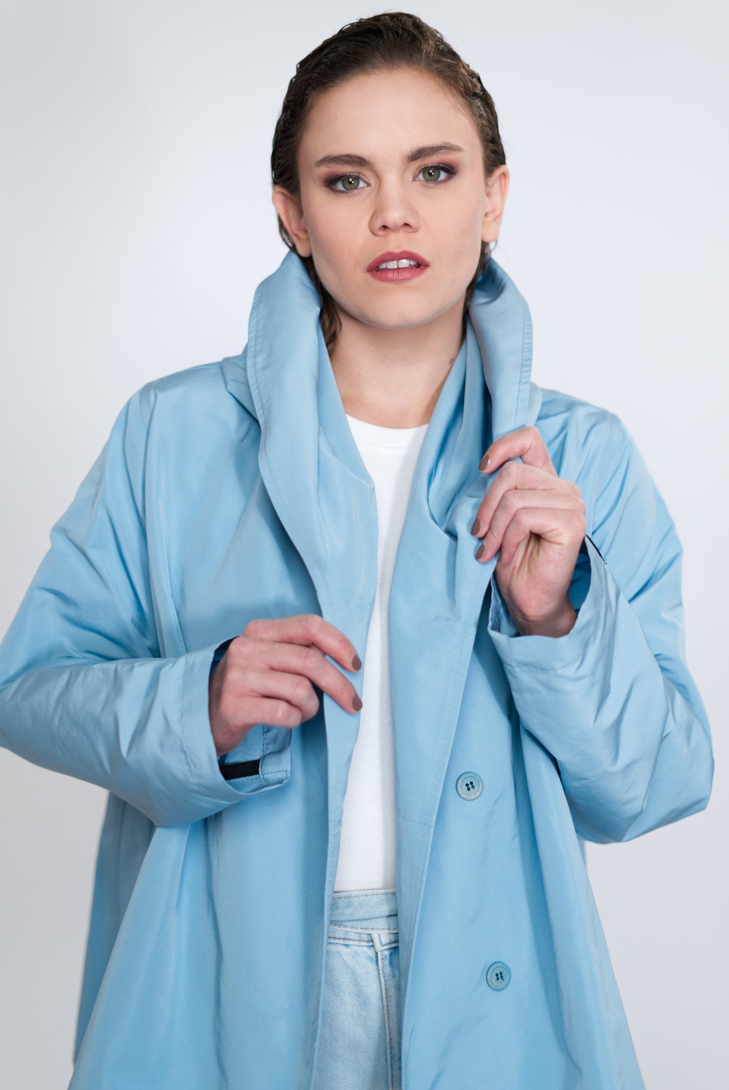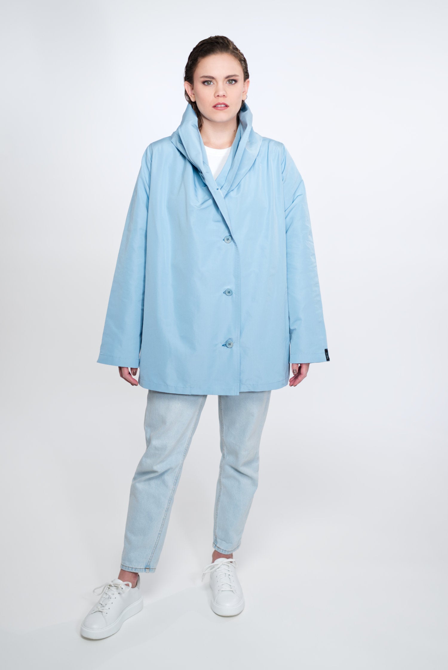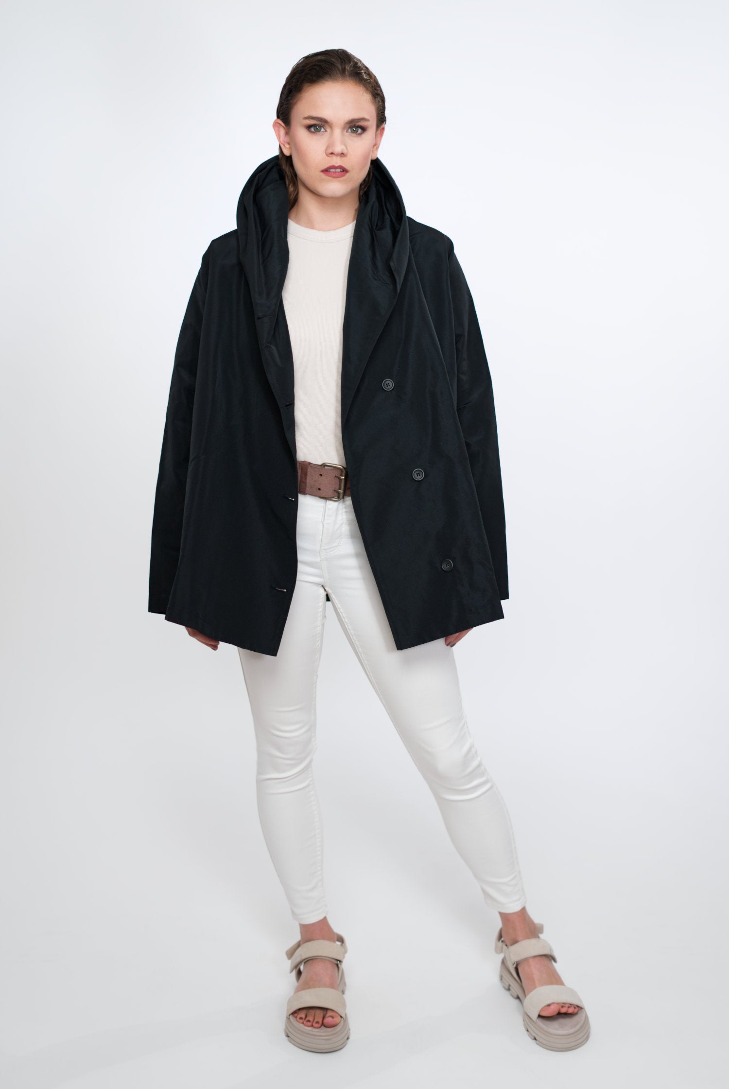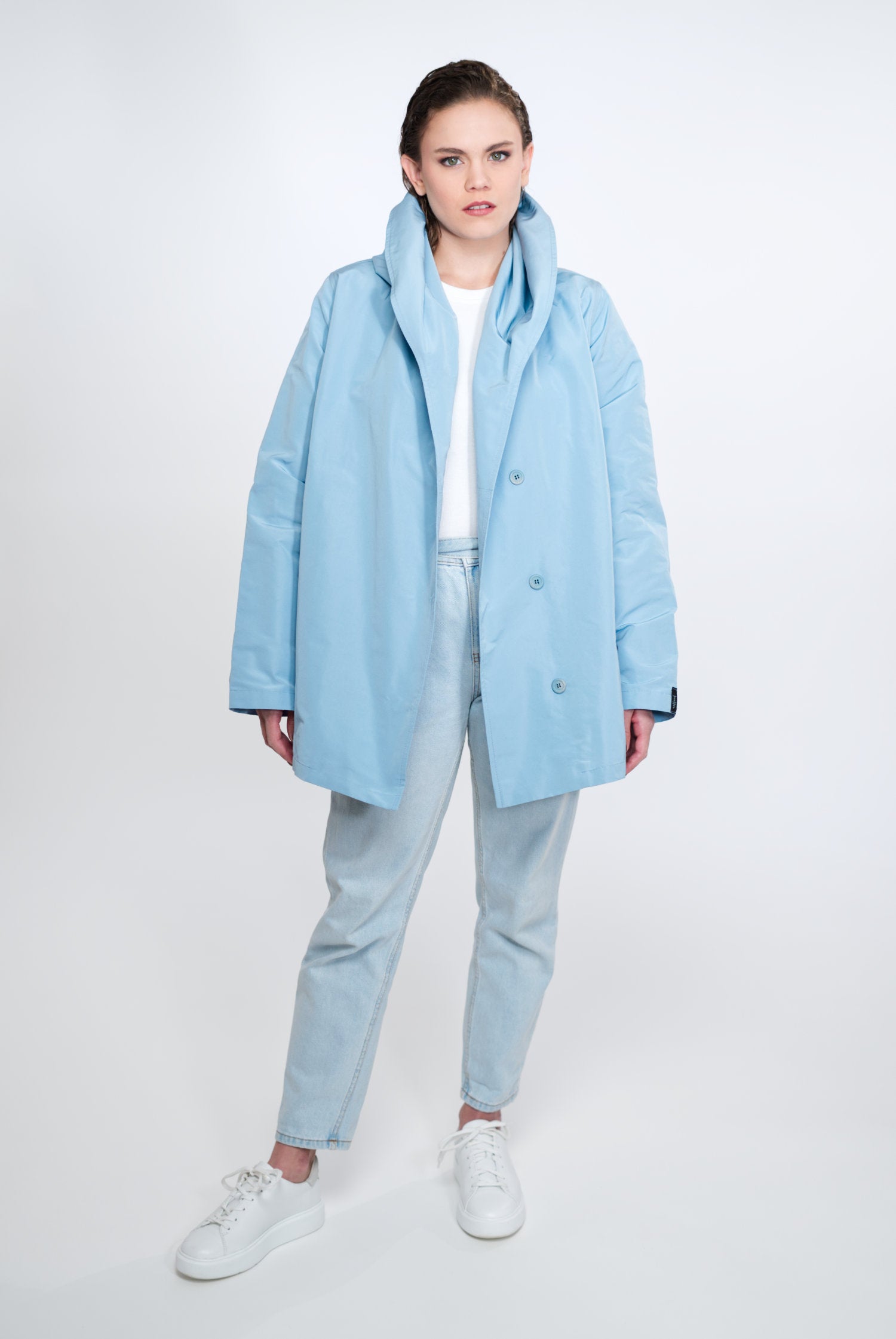 VIOLA ist nicht einfach nur eine Jacke, sie ist ein Statement für Modebewusstsein und Nachhaltigkeit. Sie ist charakterisiert durch ihre zeitlose A-Linie, den Schalkragen mit integrierter Kapuze, versteckte Taschen und umweltfreundliche Materialien. Make a conscious choice for fashion you love!